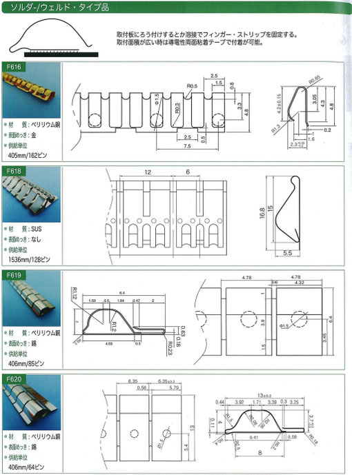 ベリリウム銅板の反発性を活かした爪状の細長い、または、小片のガスケットである。